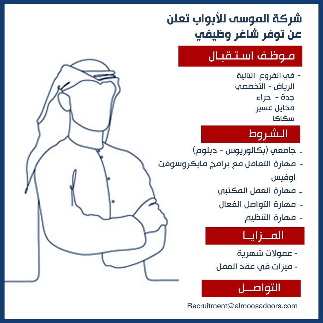 أعلنت شركة الموسى للأبواب عن وظائف لحملة الدبلوم فأعلى في 4 مدن بالرياض، جدة، محايل عسير، سكاكا .